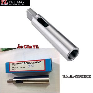 – Áo côn YL Đài Loan. Áo côn là phụ kiên giúp tăng kích thước cho chuôi côn hoặc mũi khoan côn khi lắp vào máy khoan và máy tiện , ví dụ : máy khoan có trục chính dạng côn MT3 muốn lắp mũi khoan 20mm chuẩn côn MT2 vào máy thì dùng thêm áo côn MT2x3 là có thể lắp trực tiếp mũi khoan côn MT2 phi 20 vào máy khoan có trục MT3. Áo côn YL có nguyên bộ từ Mt1 đến MT6.