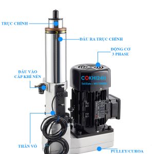 – Việc trục chính đi xuống để ăn phôi và đi lên về 0 được kiểm soát bởi bộ phận khí nén và piston thủy lực điều chỉnh tốc độ.