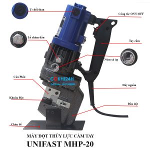 Máy Đột Lỗ Thủy Lực Cầm Tay Unifast MHP-20 Short – Đột Ø6–20.5mm, Thép 6mm, 1800W, 11kg