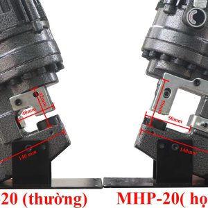 ⚠️ Lưu ý: Phiên bản này là MHP-20 Họng Rộng (55mm × 50mm) — khác với MHP-20 Short thường (42mm × 40mm). Cả hai cùng giá và cùng kích thước máy — chọn theo chiều sâu cánh sắt U/V cần đột vào. Cần đột thép dày hơn 6mm hoặc lỗ lớn hơn Ø20.5mm xem thêm MHP-25.