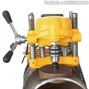 - 🔹 Đế chữ K + 2 dây xích tăng đưa – ôm chặt vào thân ống, giữ máy vuông góc chính xác, không trượt dù khoan trên cao hay lộn ngược.