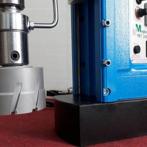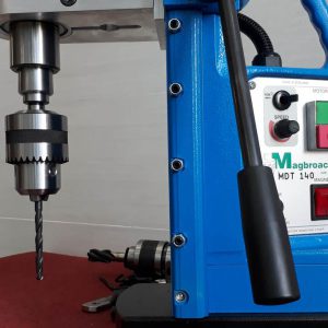 Máy khoan đế từ Magbroach MDT140 (Anh Quốc) là model công suất lớn nhất trong dòng máy khoan từ Magbroach — động cơ Rotor dây quấn 2300W, khoét lỗ tối đa Ø140mm, ta rô M6–M44 và khoan xoắn đến Ø50mm. Hành trình trục chính 320mm — dài nhất trong toàn bộ dòng Magbroach, phù hợp khoan sâu và thi công kết cấu thép dày trên cao.