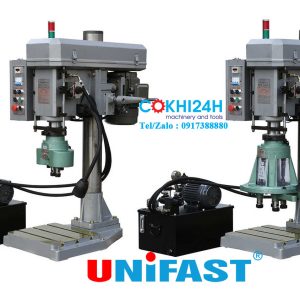 Máy khoan tự động thủy lực Unifast AHD-30 là máy khoan công nghiệp chuyên dụng cho sản xuất loạt lớn — khoan lỗ đến Ø30mm, hành trình trục chính 140mm, ăn phôi tự động bằng xi lanh thủy lực (bơm thủy lực rời, áp suất 20–25MPa). Động cơ chính 2.2kW, động cơ thủy lực 1.0kW, nguồn 380V 3 pha. Trục chính MT3, cổ trục Ø75mm, 3 cấp tốc độ 400/800/1200 rpm.
