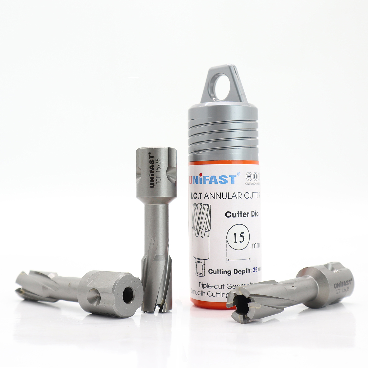 Mũi Khoét Lỗ Máy Khoan Từ Unifast TCT 15×35 – Ø15mm, Thép & Inox, Weldon 19mm