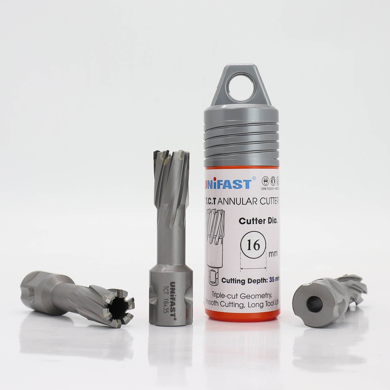 Mũi Khoét Lỗ Máy Khoan Từ Unifast TCT 16×35 – Ø16mm, Thép & Inox, Weldon 19mm
